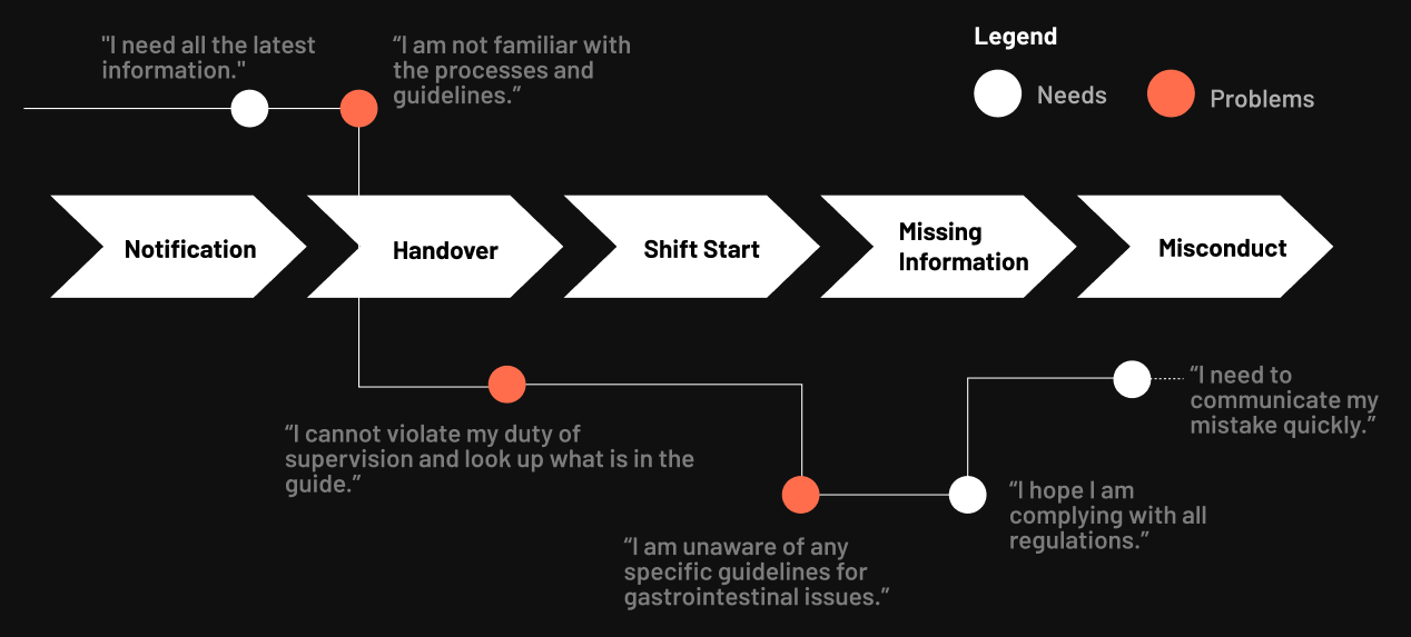 With the help of empathy maps and the value proposition canvas, user needs were analysed on the basis of a persona in order to offer a suitable value and benefit proposition and achieve a problem-solution fit. It was crucial to record each individual step and document all actions in this use case. In order to obtain a more comprehensive picture of the situation, the needs and problems associated with each action were also recorded.