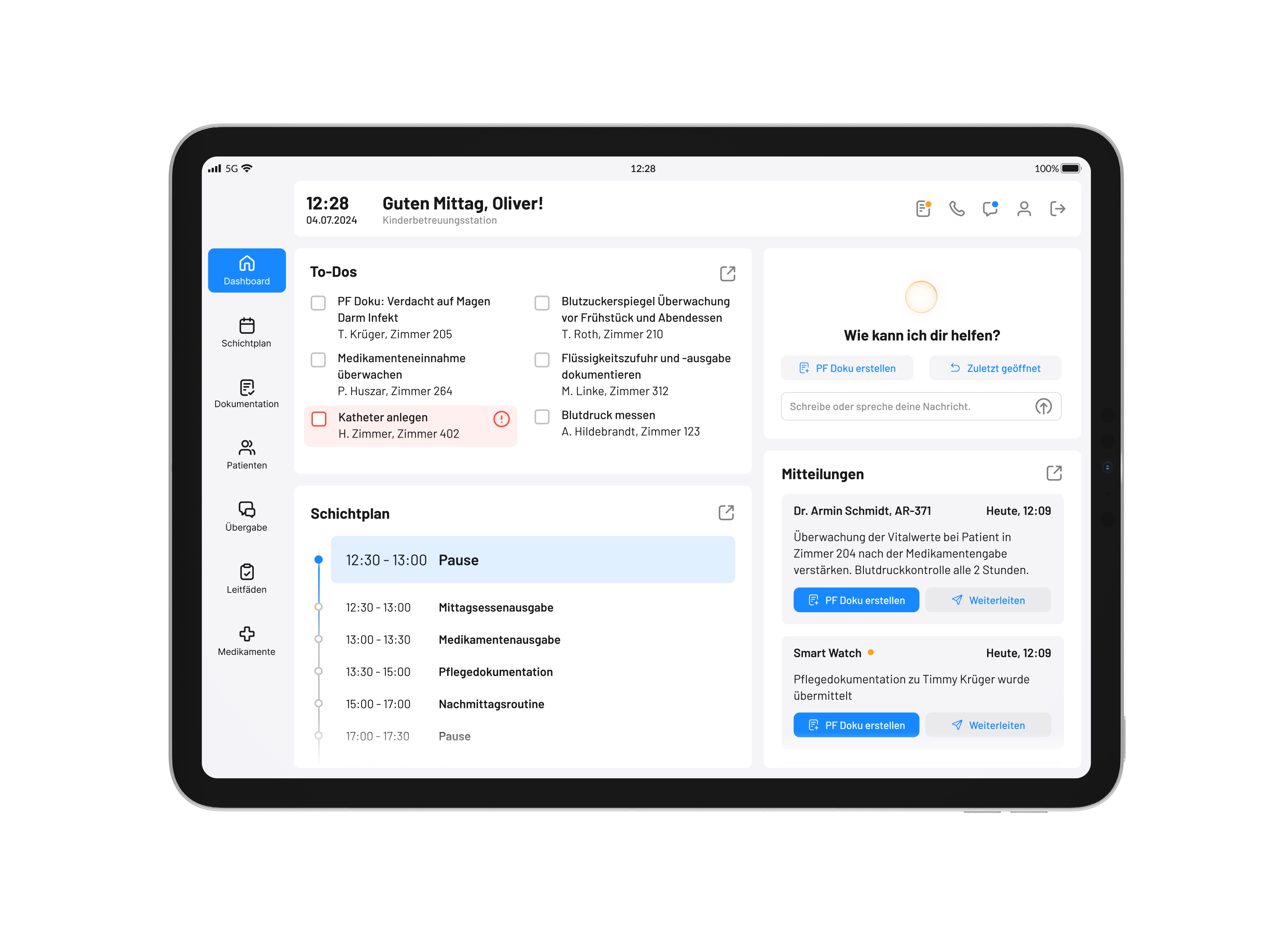 In care facilities, a lack of quality management guidelines and the resulting misconduct lead to increased staff turnover among nursing staff. They are often transferred to other wards unprepared, as they only have two hours per year to familiarise themselves with all the hospital's procedures. This makes it difficult for them to absorb and remember all the relevant information.How can care documentation and the provision of guidelines for nursing staff be optimised in order to use time more efficiently and have routines and guidelines readily available at all times?